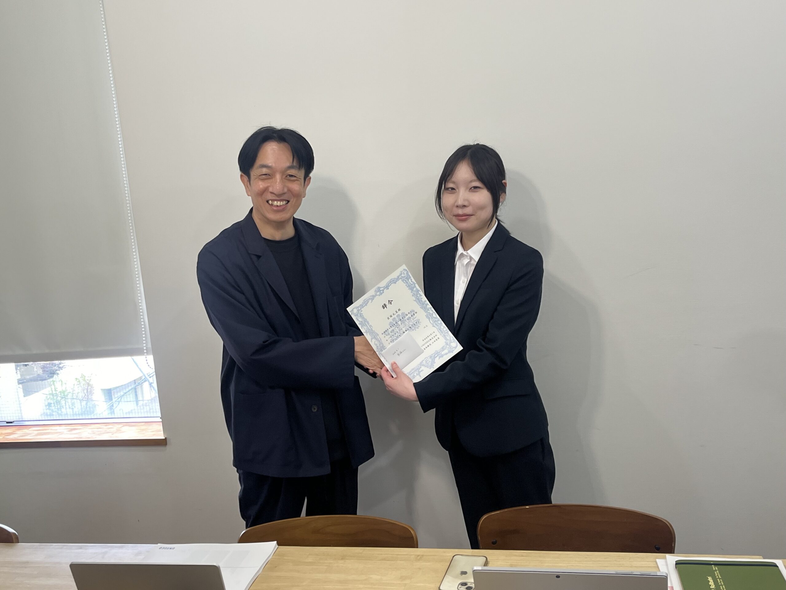代表の山田さんと新入社員の貝塚さん!いい笑顔です!