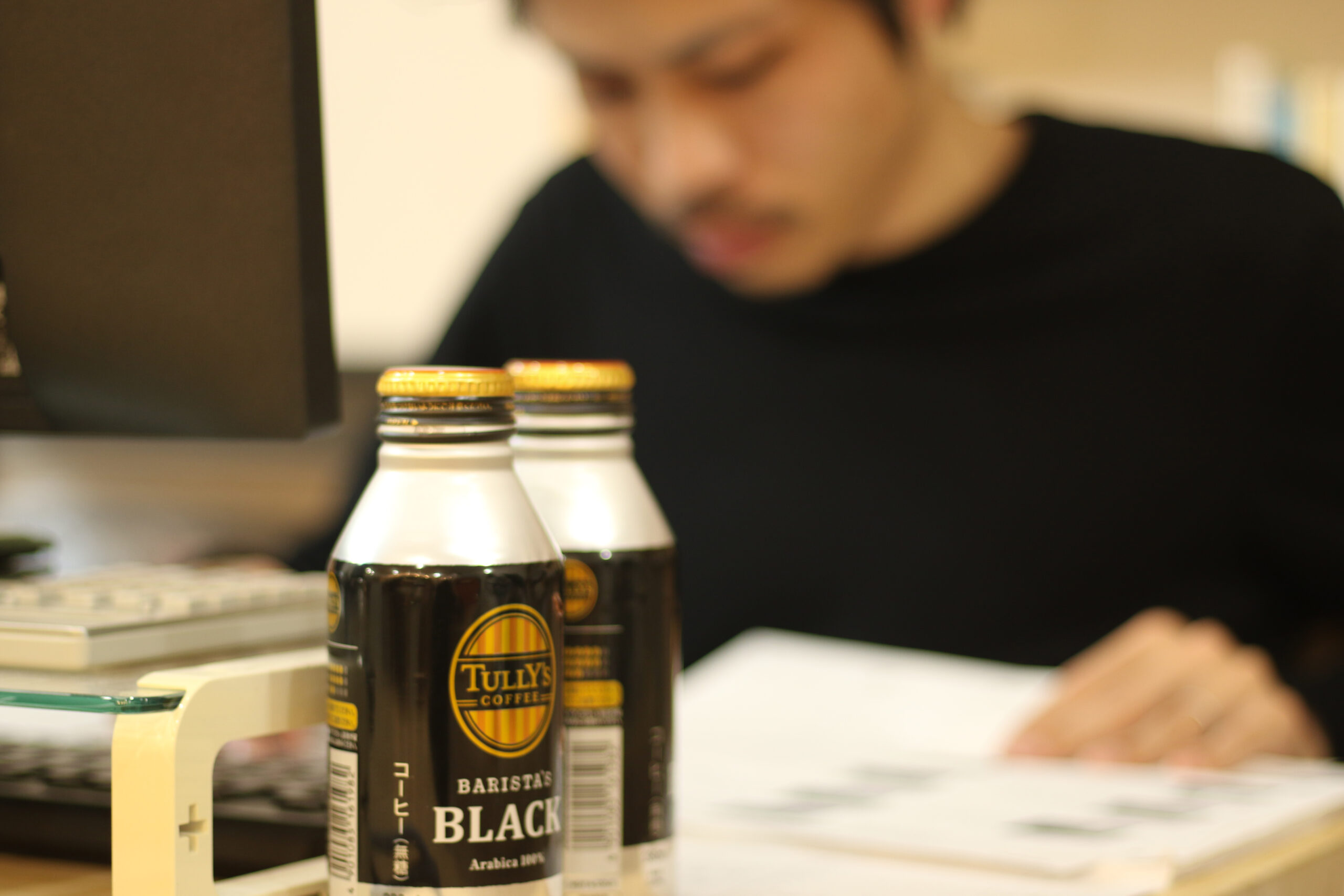 缶コーヒーです!夕方になるとデスクに空き缶が積み上がります。